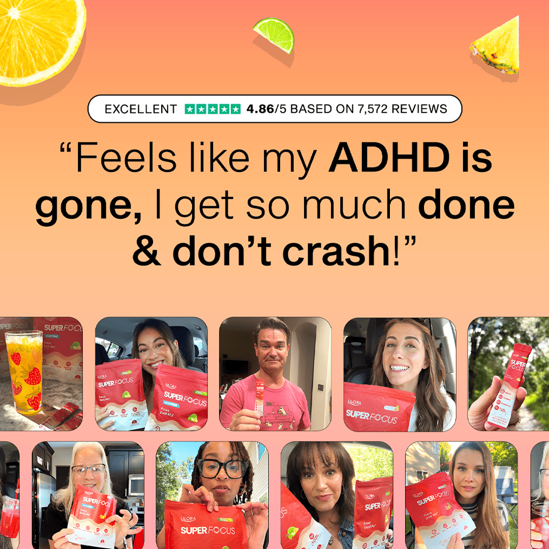 Ulora Superfocus is a daily drink mix made for ADHD brains. It combines L Tyrosine, Alpha GPC, Lion’s Mane, and Rhodiola to boost focus, motivation, and mental clarity without stimulants, crashes, or jitters.