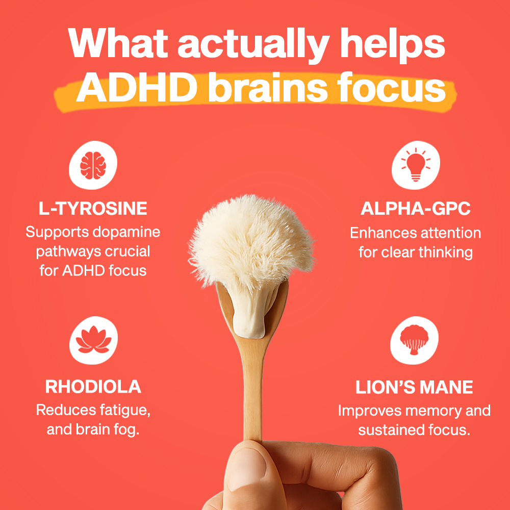 Ulora Superfocus is a daily drink mix made for ADHD brains. It combines L Tyrosine, Alpha GPC, Lion’s Mane, and Rhodiola to boost focus, motivation, and mental clarity without stimulants, crashes, or jitters.